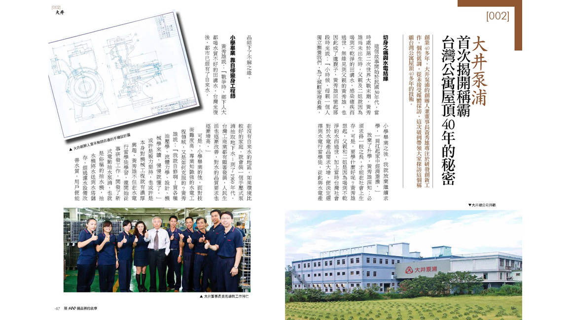 公司中文名稱更名為「大井泵浦工業(yè)股份有限公司」,將「泵浦」二字併入公司名稱內(nèi),正式確立公司產(chǎn)品走向。