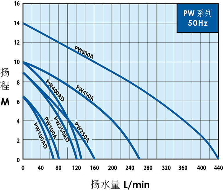 PW800A最低工作水位:12 ±1 cm