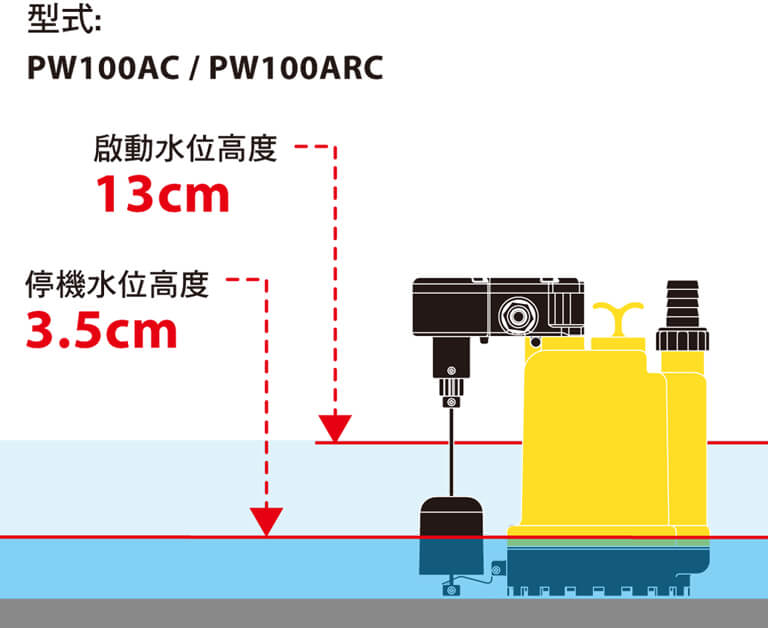 PW100A最低工作水位:7 ±1 cm