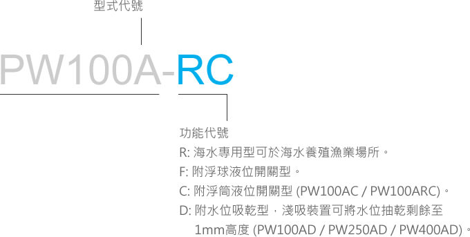 PW250A最低工作水位:9 ±1 cm