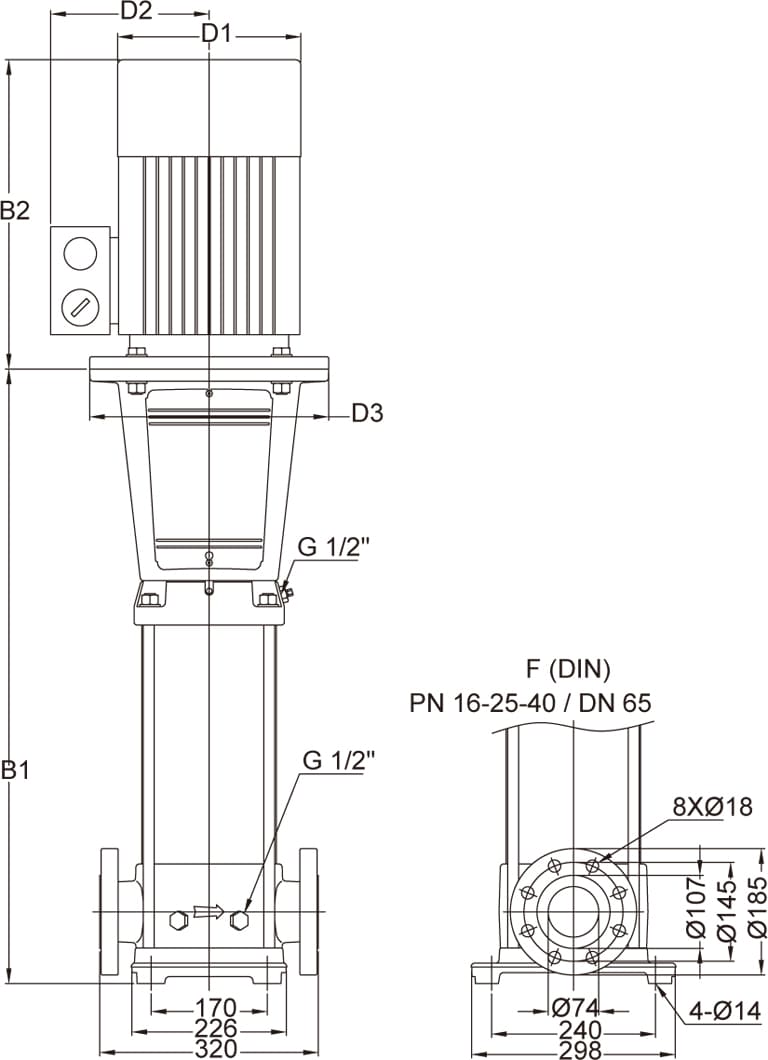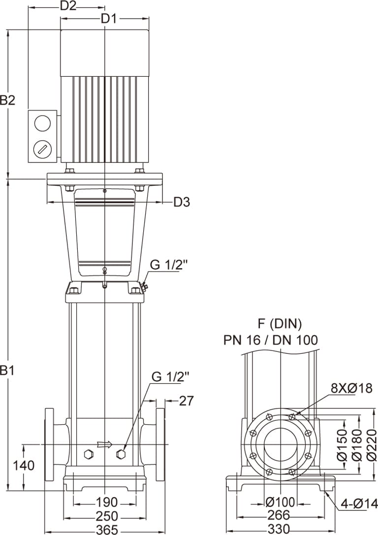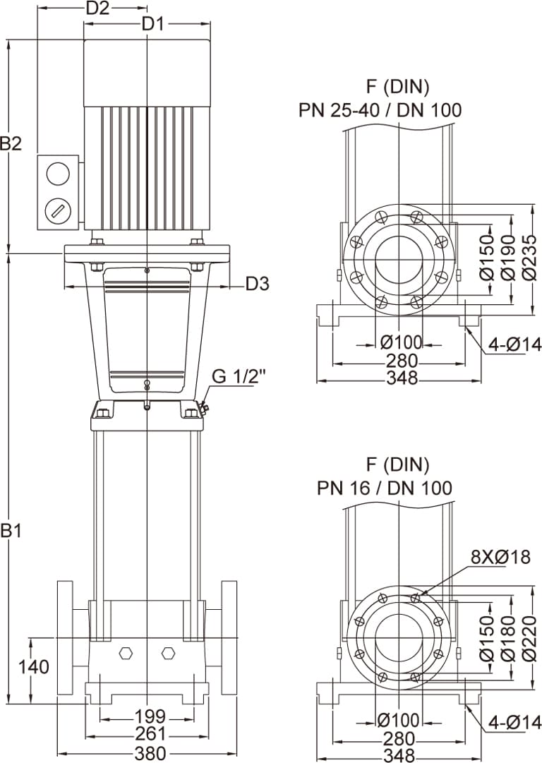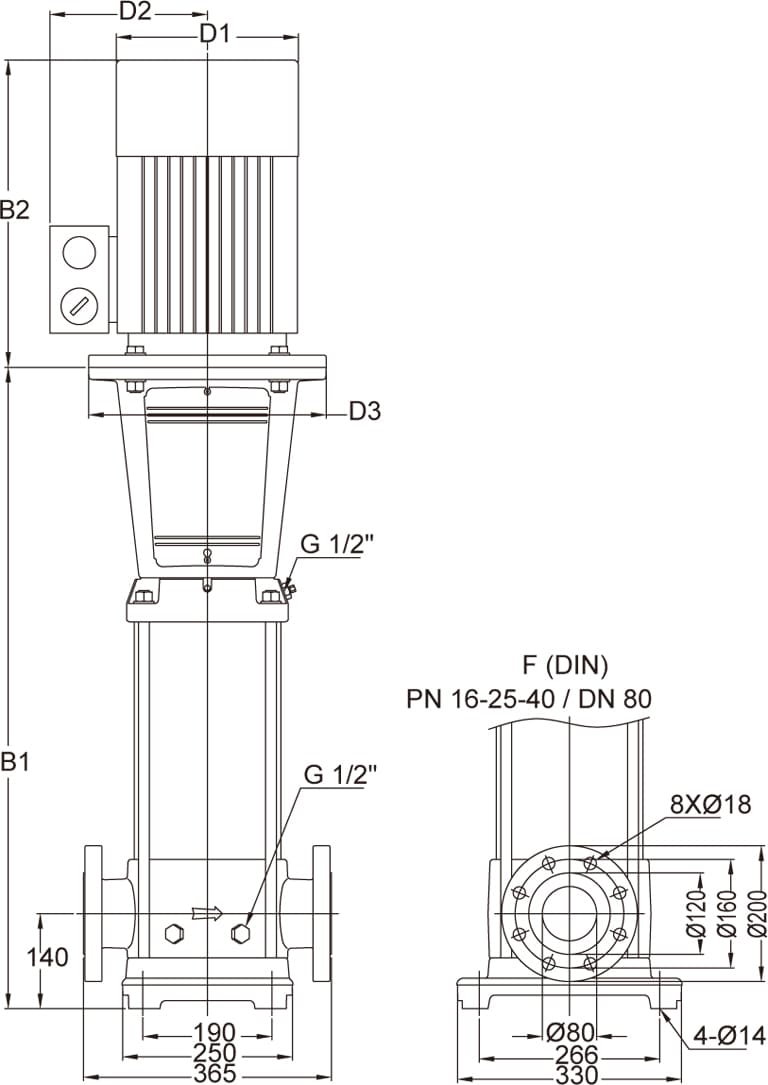 為非自吸式的立式多段離心泵,整個泵主要由電機(jī)、泵頭、泵體、基座等組成,泵出入口在同一條直線上,所有的泵均配用免維護(hù)的軸封。