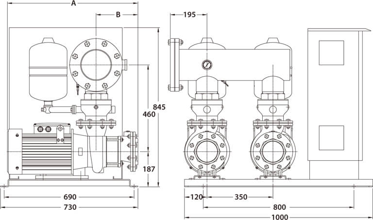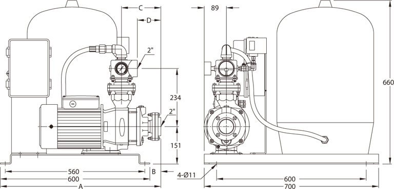 使用水時,管壓降至壓力開關(guān)ON值時,泵浦自行啟動增壓送水;停止用水時,管壓達(dá)壓力開關(guān)OFF值時,泵浦自動關(guān)機(jī)。