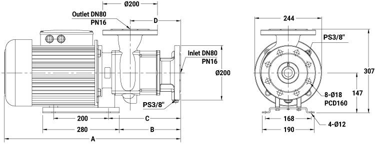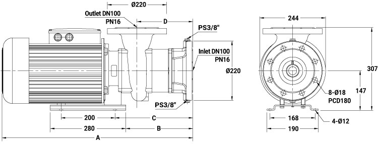 █ TPM 為水平多段式離心泵浦,非自吸,泵與馬達(dá)同軸設(shè)計(jì),配用機(jī)械軸封,葉輪安裝在馬達(dá)延長(zhǎng)之軸心上,軸向 入口、徑向出口的緊湊型泵浦機(jī)組。